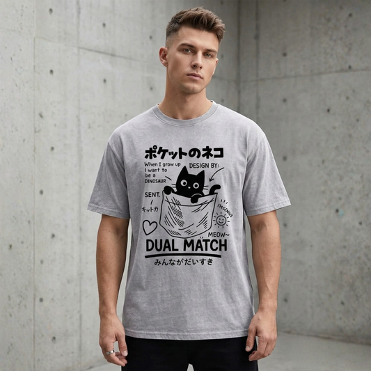 Inspirada en la personalidad de los gatos —independientes, curiosos, elegantes y a veces pequeñas catástrofes— esta colección mezcla actitud urbana con ilustraciones llenas de carácter.